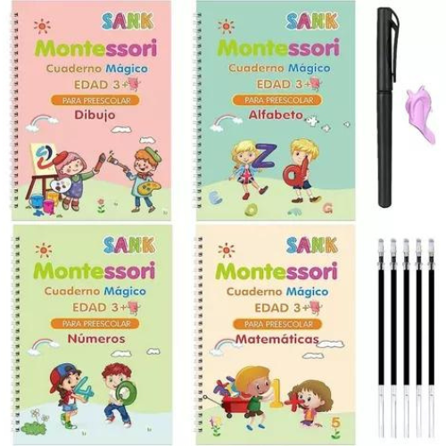 4 cuadernos mágicos de caligrafía (DIBUJO, NUMEROS, ALFABETO, MATEMATICAS)